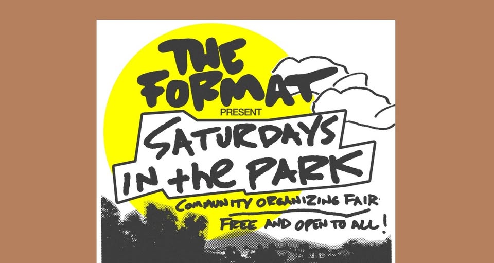 “Join The Format at Saturdays In The Park to hear music and learn about local organizations doing important work in your community. Make buttons, connect with other fans, and enjoy acoustic performances from The Format and some of their musical friends. Saturdays In The Park events are free, all ages, and will run during the afternoon.”